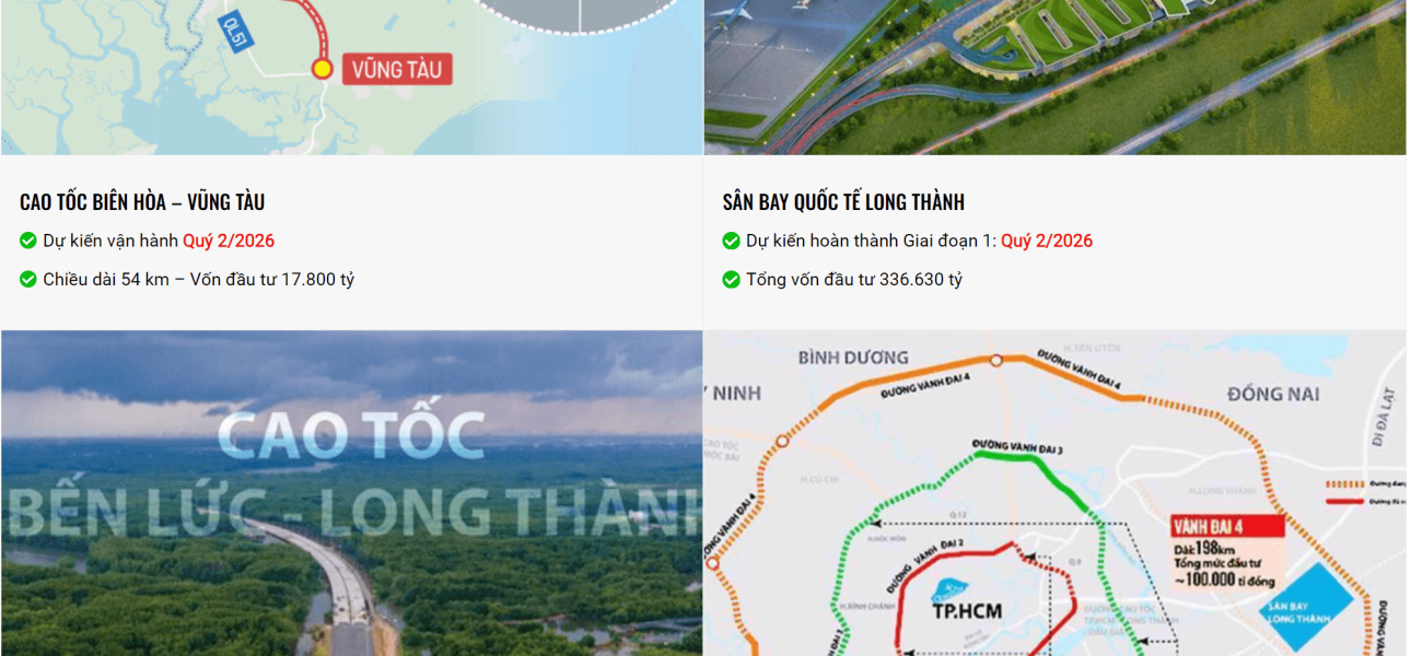 Sân bay Quốc tế Long Thành cũng sẽ thúc đẩy sự phát triển hạ tầng khu vực, đặc biệt là các tuyến giao thông lớn kết nối đến sân bay như cao tốc TP Hồ Chí Minh – Long Thành – Dầu Giây mở rộng, cao tốc Biên Hòa – Vũng Tàu, cao tốc Bến Lức – Long Thành, cùng với các tuyến đường sắt và đường Vành đai. Những cơ sở hạ tầng này sẽ gián tiếp thúc đẩy lưu thông hàng hóa, sản xuất và thương mại, từ đó kích thích nền kinh tế liên vùng, trong đó bất động sản cũng sẽ được hưởng lợi.