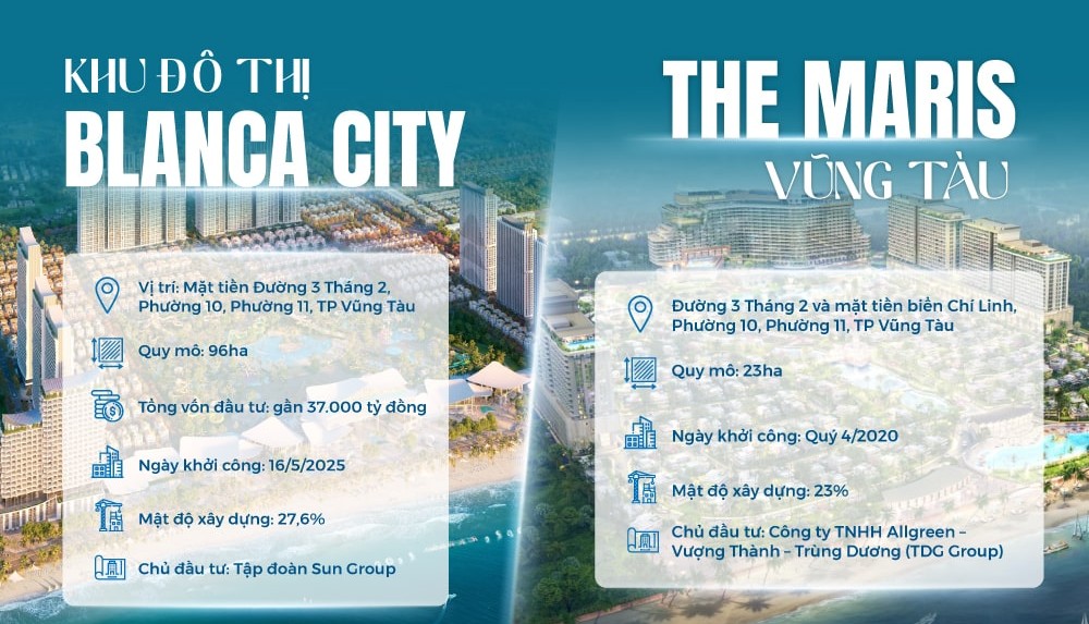 Ngay bên cạnh, tổ hợp nghỉ dưỡng The Maris Vũng Tàu cũng đang dần hoàn thiện, với một số hạng mục đã đi vào hoạt động, trở thành điểm đến thu hút khách du lịch thời gian gần đây. Cả hai dự án đều tọa lạc trên tuyến đường 3/2 – khu vực được đánh giá là trung tâm phát triển bất động sản nghỉ dưỡng mới nhờ vào vị trí ven biển, giao thông thuận lợi và tiềm năng du lịch vượt trội.