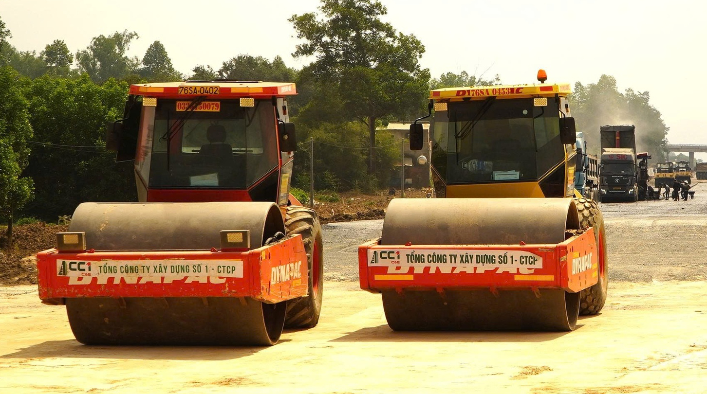 Trong khi đó, tại tuyến cao tốc Biên Hòa – Vũng Tàu đoạn qua địa bàn tỉnh Đồng Nai, lực lượng thi công đang tập trung hoàn thiện nền đường ở khu vực đầu tuyến và cầu vượt nút giao Võ Nguyên Giáp (phường Phước Tân). Các xe thảm nhựa, xe chuyên dụng cùng đội ngũ kỹ sư, công nhân làm việc rộn ràng; từng lớp nhựa nóng được trải đều, phẳng trên mặt đường. Ngay bên cạnh, một nhóm công nhân khác khẩn trương làm sạch bề mặt, thổi bụi, sẵn sàng cho công đoạn thảm nhựa tại khu vực nút giao.