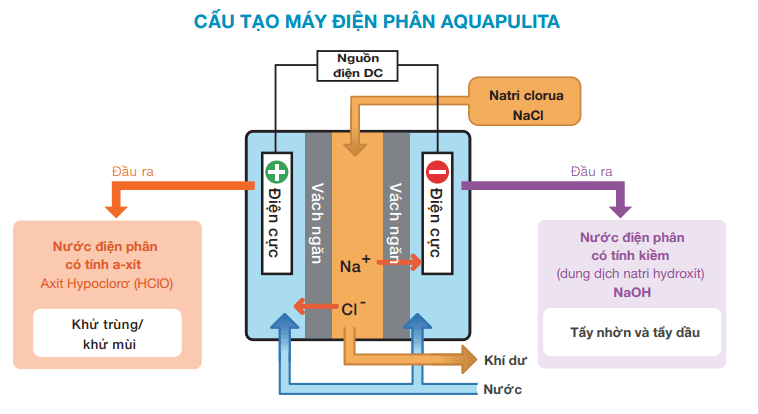 - Máy Điện phân muối tạo ra một dòng điện chạy qua nước muối.