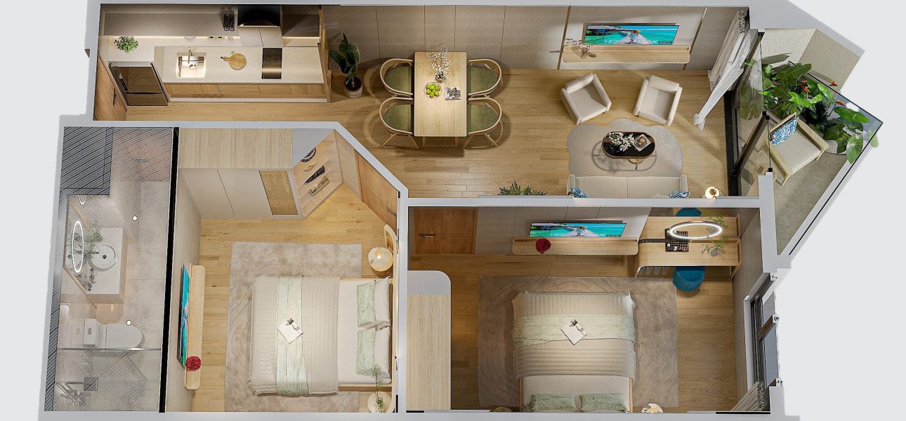 👉 Mỗi căn hộ Vega Alaric với không gian phòng đảm bảo đầy đủ các phòng chức năng: phòng ngủ, phòng tắm, phòng khách, bếp… với thiết kế thông minh cùng nhiều ưu điểm nổi bật: