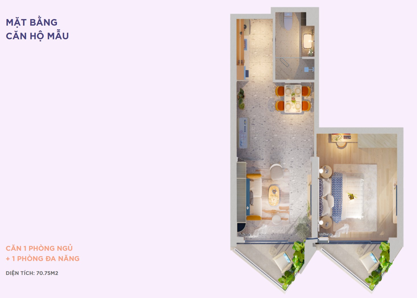 Mặt bằng căn hộ 1 phòng ngủ + 1 Polaris Vũng Tàu