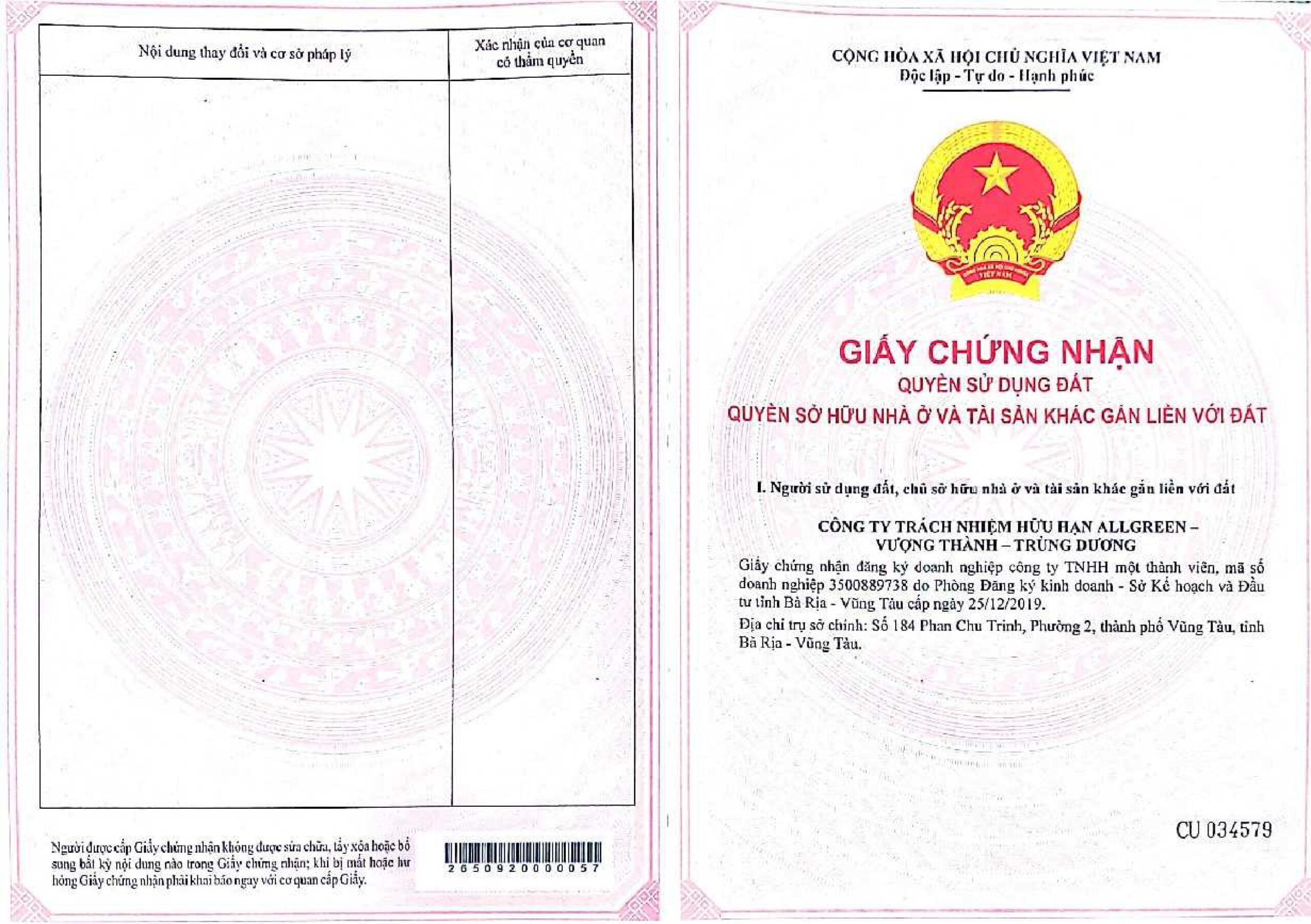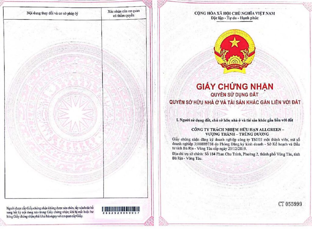 Giấy chứng nhận Quyền sử dụng đất dự án The Maris Vũng Tàu