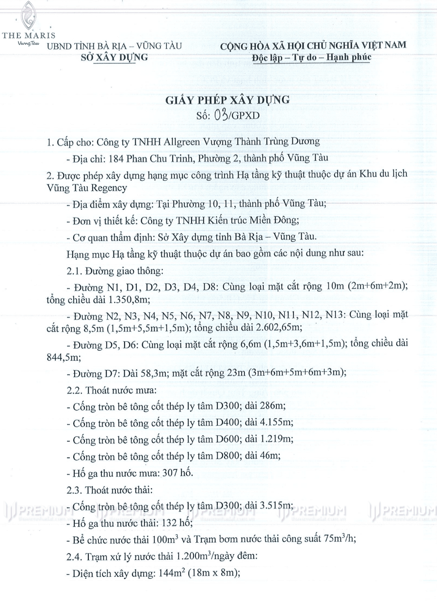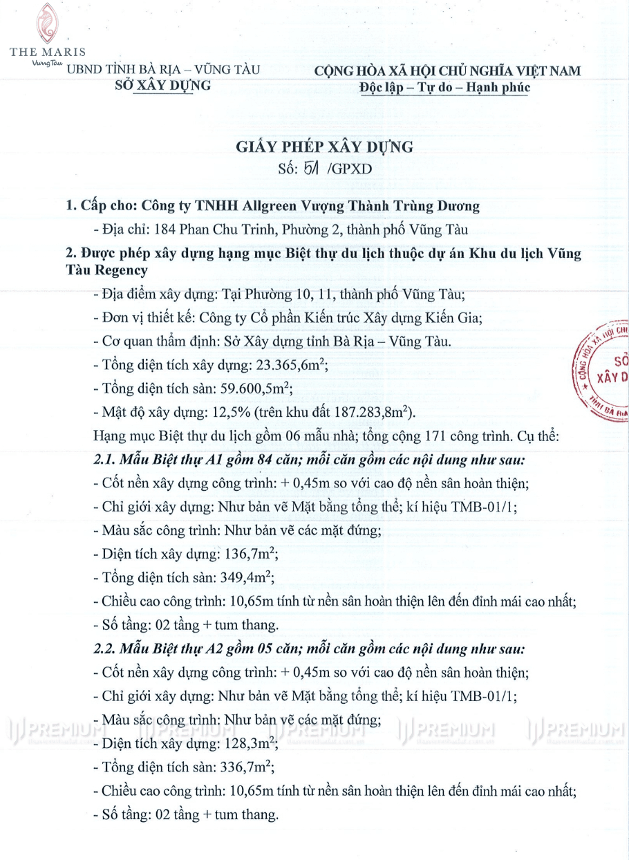 Giấy phép xây dựng Biệt Thự Serenity The Maris Vũng Tàu