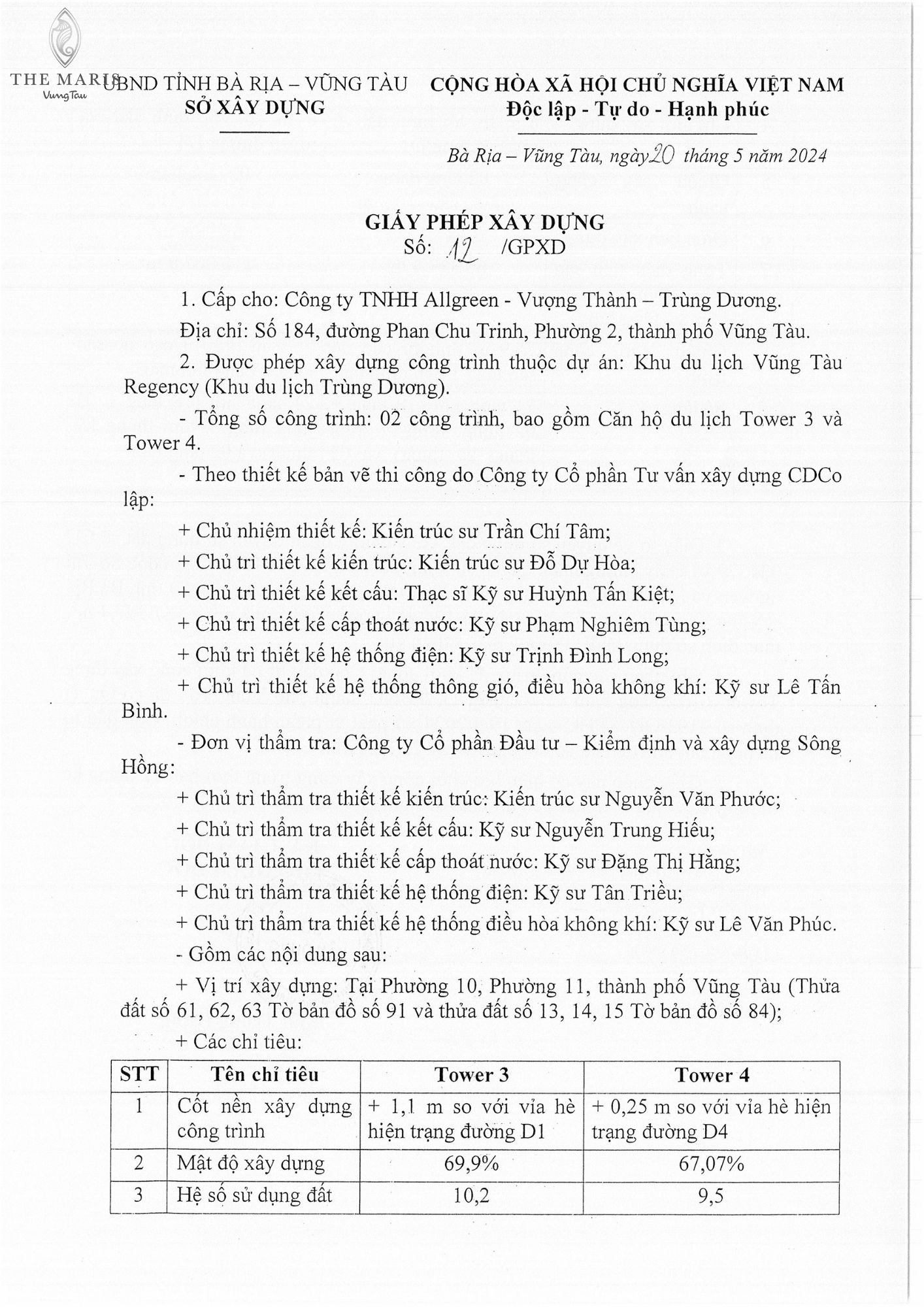 Giấy phép xây dựng căn Hộ Vega Alaric Vũng Tàu