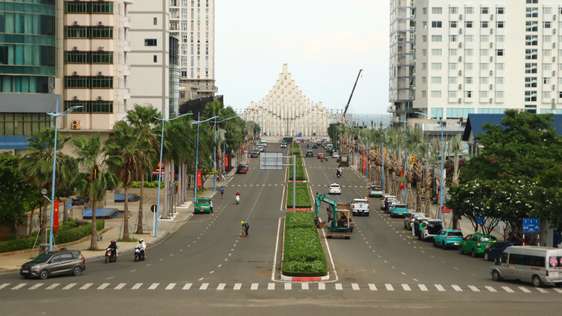 Các khu vực công viên xung quanh được đầu tư đồng bộ, bao gồm đường đi bộ ngắm biển, bồn hoa, cây xanh và không gian thư giãn.